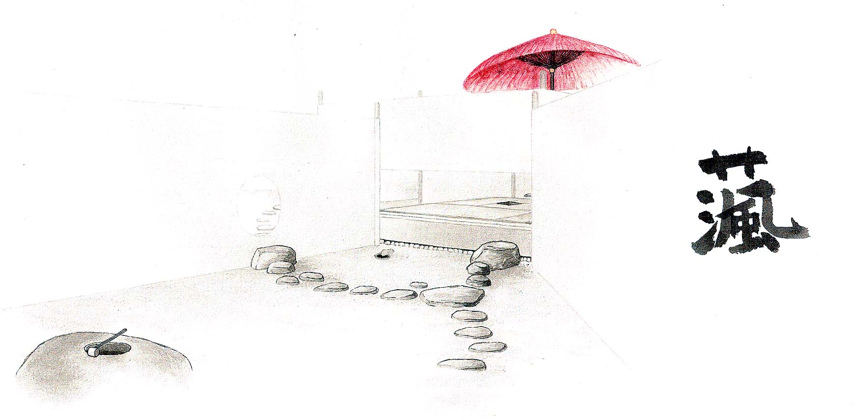 <布囲いの茶席、 能の庭、 松竹梅・鶴亀の庭>